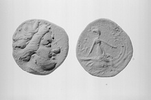 | Obverse: | Head of Maenad r., wearing vine wreath. | |