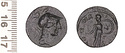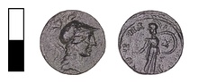 | Obverse: | Head of Athena r., wearing Corinthian helmet. Border of dots. | |