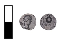 | Obverse: | Bust of Theseus r., head bare, with club over l. shoulder. Border of dots. | |