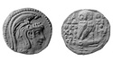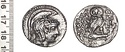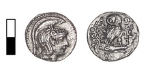 | Obverse: | Head of Athena Parthenos r., wearing elaborately ornamented Attic helmet. Border of dots. | |