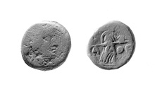 | Obverse: | Head of youthful Dionysos r., wearing ivy wreath; border of dots. | |