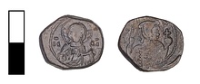 | Obverse: | Bust of Christ, bearded and nimbate, wearing tunic and colobion; holds Gospels in l. hand. In field, l. and r., &MG9; - &MG10;. | |