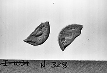 | Description: | Plated counterfeit of silver stater. Intentionally halved. No surviving trace of silver plating. | |