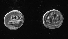 | Reverse: | Tripod between two dolphins upward; border of dots. | |