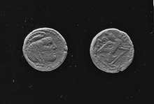 | Reverse: | &AG3;Θ-Ε Sphinx wearing modius, seated r. All in olive wreath. | |
