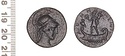 | Reverse: | ΑΘΗΝ-ΑΙ&AG5;Ν Themistokles, in military dress and holding trophy with l. hand and wreath with upraised r., standing l. on galley sailing l.; on prow, owl standing l.; on ram, snake to l. Border of dots. | |