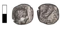 | Obverse: | Head of Athena r., wearing Attic helmet ornamented with palmette and olive leaves. | |