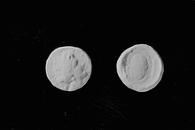 | Reverse: | ςAλ[A] downward at r. of Shield of Ajax; at l., sword in sheath; [?triskeles device on shield]. | |