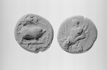 | Obverse: | Triptolemos l., seated in chariot, as on Agora XXVI, nos. 48 and 49. | |