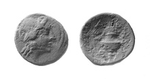 | Obverse: | Head of Demeter r., wearing wheat wreath; border of dots. | |