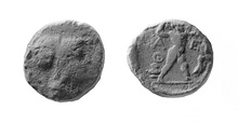 | Obverse: | Head of Athena r., wearing Corinthian helmet; border of dots. | |