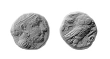 | Reverse: | AθE Owl stg. r., facing; behind, olive spray and crescent. | |