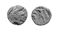 | Reverse: | Α-Θ/Ε Zeus striding r., hurling thunderbolt, eagle perched on his extended l. arm; at l., wheat ear. | |