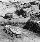 | Description: | (RSY=Pyre 2). Pyre in the industrial area west of the Areopagus, in House B. In northern corner of room. No pit discerned. A deposit of small stones (a marker/) lay 0.30m above the level of the pyre, in turn covered by a 4th c. fill. The room where the pyre was located was added to the house in its second phase. The pyre considerably postdates the construction of the second phase, but may date earlier than its abandonment. Sticks of charred wood were visible under the pots, suggesting that the pyre was burnt in situ. | |