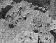 | Description: | Mycenaean tomb: Myc. III A:1-2. SAI Small rectangular chamber, 2.30m wide by 1.80m deep,, entered from the east through a dromos 1.10m wide which contracted to a doorway 0.92m. wide. the doorway preserved its rough stone blocking wall to a height of 0.70m to 0.80m., and the dromos the firm red earth with which it had been packed to a height of 1.30m. Only the lower 0.50m of the chamber had been hewn from bedrock, the upper part being cut from very compact gravelly earth. The ceiling of the chamber had collapsed at least as early as the 6th c. B.C. Two skeletons were found lying in order, their heads toward the east and their legs doubled up. Several earlier interments had been swept aside; some bones were found in the corners of the chamber. others in a small pit (0.55x0.30x0.23 deep)near the southeast corner | |