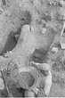 | Description: | Grave 3 in notebook (E.L. Smithson: Grave XIII: PG). Urn cremation (trench-and-hole), adult female. JP Rectangular trench, measuring approximately 1.10x0.45m, but which may have been larger, cut through earth and partly into bedrock. The roughly circular urn-hole was located to the east; the bedrock dipped sharply along the west side of the grave. Much of the trench and the upper part of the urn-hole were destroyed by Classical and Hellenistic builders. Cremated remains of an adult woman aged 25-35 years at death. Nothing was preserved, or noted, of any tomb covering. The fill of the trench was excavated in three layers: 1. "Burned earth" fired red with the odd pyre sherd noted on the floor and spilling into the urn-hole". 2. layer of ash and charcoal. 3. Dug and redeposited bedrock, encountered just below Hellenistic deposits above the trench. Young " The burial seems to have been quite normal-cremation on the spot, the bones and jewelry gathered up and placed in the amphora, and the whole buried in a pit. If there were broken pots outside as offerings, they have since disappeared." | |