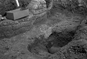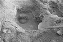 | Description: | Grave 2 in notebook (E.L. Smithson: Grave XV: PG). Urn cremation (trench-and-hole), adult female. JP It consists of a roughly rectangular pit or trench cut into bedrock to a depth of 0.35m., measuring 1.12m long and 0.67m wide. The trench was oriented east-west, urn-hole to the east. The fill of what remained of the pyre trench contained much burned debris, especially in the western part of the tomb. The urn-hole, cut to a depth of 0.62m., measured roughly 0.40m in diameter. the urn-hole itself, but not the rectangular trench of the tomb, was sealed by a large, flat stone, broken in situ. Textile pseudomorphs were noted along with animal bones, some heavily burned. | |