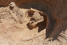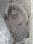 | Description: | Bronze foundry north of bridge on Piraeus street, east of Great Drain. Keyhole-shaped bronze casting pit, cut into bedrock. 2016: Continuation of the excavation of a rectangular pit with foundry debris, first excavated in 1949. Earlier material published by Mattusch, Hesp. 46 (1977): 374. Pit cut into bedrock at west and north; fill continues beneath later wall (“Wall A”) at east. Appears to be cut into fill at south, but that area is disturbed by a modern water pipe from the landscaping of the Agora. Pit is 2.58m long (N-S), at least 1.35m wide; 0.66m at narrow north end; 1.36m deep. We reached a maximum depth of 59.781m by the end of the 2016 season, but more remains to be excavated. 2017-2018: Upper level disturbed by modern water pipe at southwest and Wall A (probably Hellenistic) at east. Oriented north-south: 2.58m long; 1.35m at widest point; 0.66m at narrow north end; 1.36m deep. Three steps cut into bedrock at north. Seven standing mudbricks line the bedrock wall at south, surrounding a ceramic stand, hand-formed on a cut bedrock base. An iron rod projects from the center, traces of pouring channel at top, originally connected to some of the mold fragments. Medium-packed fill contains copious ceramic fragments from metal casting operation(s). Includes many molds, some retaining the shape of their casted object, several pieces quite large. Much vitrification; some charcoal and bronze debris. Very little pottery: most is archaic or earlier, but some sherds may go down towards the middle of the 5th c. BC. No evidence that casting took place in the pit itself. No catalogued finds in 2016. | |
