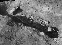 | Description: | Grave cut into bedrock (L. 2m, W. 0.58m), head toward E; offerings at south end. Skeleton of a male about 40 years old, laid out with knees slightly bent. Brann. | |