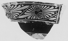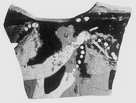 | Description: | "Foundry Pit": N-S Cut on 50m. line (area of Stoa, Layer VII, with slag). A foundry pit in the courtyard of a small metalworking establishment outside the Agora to the northwest. Both the courtyard and the pit preserved many traces of iron-working including slag, ash and charcoal, along with a considerable amount of pottery, figured, plain glazed and coarse, all fragmentary but constituting a homogeneous deposit, most of it rather earlier than the most developed material from Olynthos. A few pieces not directly from the pit, but from closely related levels in the immediate vicinity are referred to this deposit. Formerly deposit no. F 2:1. | |
