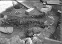 | Description: | Grave 1. Urn cremation (trench-and-hole), adult female 30-40 years old). Mentioned as Grave XVII in Deposit list. Consisted of a roughly circular pit, approximately 0.30-0.40m in diameter, cut into soft bedrock against the face of an outcrop of natural rock, described by the excavator as limestone, to a depth of about 0.35m. P 325 served as cinerary urn and was placed upright within the pit and firmly fixed in place by small stones packed tightly around the amphora from shoulder to mouth. Virtually nothing of the pyre trench survived, but it's presence was indicated by hard red-colored burned earth packed tightly against the rim of the amphora along the northwest side. A few remnants of a stone packing beside the urn-hole, on the north side, probably once continuous with the packing around the urn, contained a few burned sherds, clearly pyre debris. Also P 345 from sifting earth around grave. See also P 34860-P 34866 catalogued as "sherds overlying tombs F 16:3 & F 16:4". | |
