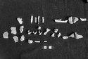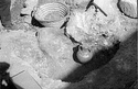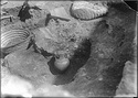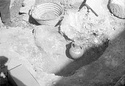 | Description: | Grave 2. Urn cremation (trench-and-hole). In some records as XXIII. Variously labeled as grid 7/Δ, 7/Γ and 7/Γ-Δ. Rectangular pyre trench cut through earth into bedrock, with only the lowest 0.04m surviving. The exact orientation of the trench has not noted in the field, but it appears to have been roughly oriented east to west (or east-southeast to west-northwest). The pyre trench measured about 1.25m long and was 0.52 m wide. The trench floor comprised what appeared to be scorched earth; it contained a few sherds, described by the excavator as being of "small bowls". The urn-hole was located at the east end of the pyre trench; its diameter and depth were not recorded, but judging from the cover stones the pit probably measured just under 0.50m in diameter and was about 0.35m deep. In it, a neck-handled amphora , which served as cinerary urn, was placed in an upright position; it contained the cremated remains of an individual described as an adolescent aged 10-14 years at death. Analysis of the human remains showed that the cinerary urn contained a small child, no more than two years old. See also P 34860-P 34866 catalogued as "sherds overlying tombs F 16:3 & F 16:4". | |