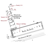 | Description: | This deposit is a Mycenaean cist grave with two cover slabs, a type of burial described by Immerwahr in Agora XIII (pp. 103-104). Cist graves appear side by side with chamber tombs in the Mycenaean cemeteries of the Agora. The cutting for the grave measured 1.80m long (E to W) and 1.06m wide (N to S). Two slabs: a worked, flat, roughly rectangular poros limestone slab on the east (which had collapsed in the tomb,, sloping down to the north), and an unworked boulder with a naturally flat top surface and uneven underside on the west (it was still in situ). Six small stones were found wedged between the edges of the boulder and the edges of the cutting, and four more small stones were found just south of the collapsed poros slab, indicating that they were also used to line the cutting or fill the gap between the cutting and the slab. The fill on top of poros slab (Lot ΒΖ 2135) included pottery dating mostly to the late 8th c. B.C., but also it included a few sherds of the first quarter of the 5th c. B.C. and an Ostrakon of Xanthippos (ΒΖ 1983), providing a terminus post quem of 484 B.C for the fill that collapsed on top of the slab. The upper fill covering the boulder on the west end of the cutting (Lots ΒΖ 2128 and 2130) dated to ca. 500 B.C., and the fill lying directly on top of the boulder (Lot ΒΖ 2131) dated to the late 8th c. B.C., indicating that the tomb was covered over in the late Geometric period. | |