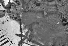 | Description: | Terracotta deposit in SW corner of Room K and E of Roman Wall L. Roman layer of red, compact earth. Baskets 50,52,54. | |