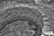 | Description: | Plaster lined cistern. The cistern seems to have been bottle shaped; the walls are narrower at the preserved top, which is broken along its entire circuit, and gradually widen until about a third of the way down, at which point they remain consistently vertical until they hit the flat bottom floor. The fill was homogeneous and apparently all deposited at the same time. | |