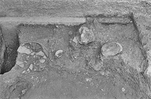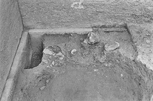 | Description: | Sacrificial Pyre II, Classical Building II. Found right beneath the stuccoed channel built for sluicing in the 1st c. A.D., and must have been partly disturbed when the channel was constructed. It may have been deposited when Floor 7 went out of use. | |