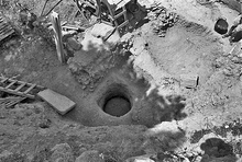 Description:   The pit consists of an unlined, circular shaft measuring 1.10m. in diameter and at least 2.23m. in depth. The sides of the shaft have roughly cut hand-/foot-holds at irregular intervals and locations. The highest fill dates to the end of the 4th. c. A.C. and included a great deal of tile and debris (e.g. bones with cut marks, painted plaster, fragments of marble plaques and vessels). Below 50.90 masl, but still of the late 4th c. A.C. the fill yielded larger fragments of pots and a greater concentration of cooking ware, bones and ash. The character of the fill appears to be domestic.