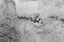 | Description: | Grave. Roughly circular pit with scraps of bone and traces of carbonized material. Four similar empty pits nearby with a little Geometric pottery. | |