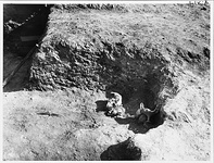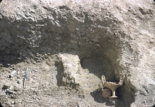 | Description: | Mycenaean grave. It consisted of a shallow rectangular cutting in bedrock about 1.40m by 0.70m, but it was probably somewhat bigger, since the east side and a large part of the north side had been cut away by later builders. It contained a single burial, that of a small child, laid lengthwise in the grave along the south side. Only the skull was preserved in position. Many minute glass beads were found under the skull and around the feeding bottle, and doubtless came from a necklace worn by the child. | |