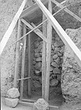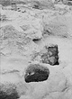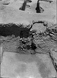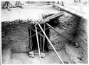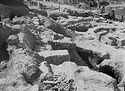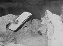 | Description: | Mycenaean Chamber Tomb occupies a considerable part of the western half of section ΕΕ; lies about half way up the north slope of the Areopagus towards its eastern end, just below the highest point of the hill. The tomb consists of a roughly rectangular chamber approached from the north by a long dromos. it is entirely hewn out of the rock of the hill and except for the wall of rough stones that blocked the doorway, there is no masonry. The rock from which it is cut, is the greenish clayey shale which underlies most of the Agora area. The dromos has a preserved length of about eleven meters. It was originally several meters longer but its northern end was cut off by a late Roman retaining wall. For most of its length it is about two meters wide, but near the door of the chamber it widens slightly to about 2.40m. Its sides are not vertical, but slope slightly inward so that the highest preserved point the width is only about 1.50m. The floor of the dromos is not quite level but slopes very slightly downwards toward the chamber, being about 20 cm lower in front of the door, than it is at the outer end. The maximum preserved depth in front of the doorway is about 2.90m but originally it must have been a meter or two deeper, for the surface of bedrock has been considerably cut down here in modern and ancient times. The fill of the dromos was uniform throughout its length: soft clean greenish earth with pebbles and occasional small stones; few sherds. The only disturbances in this fill were three pits of the Turkish period near the north end. The door or entrance passage is narrower than the dromos (width ca. 1.20m and narrows very slightly to about 1.10m at the top; maximum height 2.40m). It is tunneled into the bedrock and has a slightly rounded roof which is nowhere very well preserved. Its outer or northern end was blocked by a neatly made dry wall of rough field stones. This wall was 1.40m thick and ran right up to the roof of the passage. It had obviously never been disturbed since the day it was built. When we removed the wall we were able to support the crumbly bedrock roof with plaster and iron rods. No objects of any sort were found either in or under the wall. The inner and southern end of the entrance passage was filed with fallen bedrock from its own roof and eat side. The chamber (max N-S dimension 4.30m, max E-W dimension 5.90m, max height 2.75m) is roughly rectangular in shape and is entirely hollowed out of the rock. It is not symmetrically set with the dromos, but it is set at a slight angle. Its sides are not straight, either vertically and horizontally; its angles are not right angles; Its corners are rounded. Its roof has entirely caved in, except for a small bit projecting at the north end of the west side; probably was not flat but slightly concave (all along the north side it seems that it rises from the sides toward the center). Across the east and west ends of the chamber there is a low rock-cut bench (average width 0.75m; average height 0.60m). There is only one grave cutting in the floor of the chamber, neatly placed in the SW corner (1.80m length; 0.60m width; 1.20m depth). Its cover slab, a piece of grayish slaty stone (1.90m length; 0.60m width; 0.15m thickness), lay on the floor beside it. The fill in and above the chamber had not been seriously disturbed since Mycenaean times. High above the chamber to the south, about five meters above its floor, is the remains of a wall of a late Roman house, part of which passed over the southwest corner of the chamber and had to be removed. About a meter below this, and again over the southwest quarter of the chamber, was a corner of light rubble wall of late hellenistic times. Neither of these walls disturbed the tomb proper in any way. Body and offerings were removed from the grave not long after they had been placed there (Mycenaean times); the chamber must had been entered by digging down from the top in the western half. | |