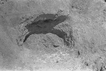 | Description: | Infant grave near Phaidon street cistern. No offerings. Roughly rectangular, almost elliptical cutting in bedrock, measuring 0.70m long, 0.35m wide, and 0.40m deep, oriented south-southwest to north-northeast. The skeleton of what was stated to be a "newborn infant," head to the south-southwest, was laid out within the pit and covered by a stone slab. Reanalysis of the bone identified the presence of two infant inhumations, which were subsequently labeled AA 289 a,b | |