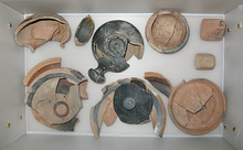 | Description: | Disturbed pyre dispersed in fill of Room 5, House D. Pyre pots in very fragmentary condition were noticed by Barbara Tsakirgis in later analysis of pottery that had been excavated in 1938; no mention of them was made at the time of excavation. The fill in which they were found lies partly over the continuation of the eastern wall of the house. Another group of pyre pots excavated in 1969 immediately to the east is probably part of the same disturbed group(s). It is likely that more than one pyre is involved: the two rilled-rim plates do not match and there are three lekanis lids (rarely does a pyre contain more than two lekanides). If originally associated with this house, the pyre (s) could be related to the 4th c. B.C. remodeling. some of the pottery exhibits burning. | |