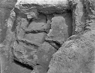 | Description: | Bronze-casting pit and furnace against S apse of Church (106/ΛΕ). Late Roman sherds of the 4th and the 6th c. A.D. were found with fragments of moulds from bronze casting. The west end was destroyed by the church builders. There is a tile floor set on bedrock and two brick piers of the south wall stand to a height of 1.12 m.; one scrap of the north wall establishes a width of 1.05m. Just to the east of this unit, which was probably the furnace, fragments of moulds, charcoal and sand were found on rising bedrock. | |