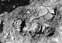 | Description: | Pyre in north central room of house, measuring 0.50m east-west by 0.35m north-south. Pottery, bone, and burnt material in pit dug into layer IIb (crushed bedrock floor: lot Ω 464, 4th c.) and covered by layer Ia (lot Ω 462, second half of 4th c., possibly into 3rd c., containing more fragments of pyre pottery probably from this pyre). The stratigraphy around the pyre cannot be physically connected to the architectural history of the house, but the date of the pyre would be consistent with a dedication at the time of the rebuilding or during the subsequent reoccupation. There were extensive traces of burning, and teh pottery has been burnt. | |