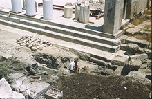 | Description: | Well below Stoa Terrace Fountain. Heavy dumped filling, including a great variety of figured and plain wares. Never completed in antiquity because of hard bedrock. | |