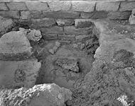 | Description: | Mycenaean Tomb to NW of Pier 19 (Burial 7). The chamber was roughly square in shape (2.70m wide by 2.10m deep), oriented northeast to southwest across in transverse axis. The entrance was at the northwest side where a row of sizable fieldstones rested on the floor of the tomb and indicated the lowest course of the original blocking wall of the doorway (0.80m wide). At the inner northeast corner of the chamber the side wall began to arch over at a height of about 0.60m above the floor. Despite the disturbance of the area, the burial layer was remarkably well preserved, with the remains of four interments and their offerings | |