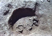 | Description: | Dog's Grave, the bones carefully disposed. It contained a small amount of contemporary pottery in the fill, of which some deposited nearby, may have been intended as offerings. | |