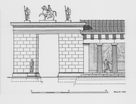 | Title: | Front elevation of the west end of the Stoa Poikile and the adjacent gateway (square), after 300 B.C. | |
