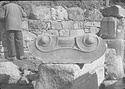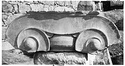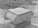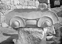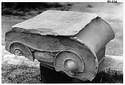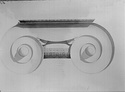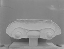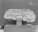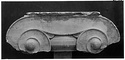 Dimensions:   H. (in mid part ) 0.305; W. (on volutes) 0.574, (abacus) 0.615; L. (on volutes) 0.875, (abacus) 0.565; Diam. (resting surface) ca. 0.51