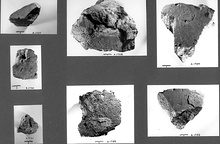 Description:   One surface preserved, finished with medium chisel, fairly smooth. At 0.10m. back from this surface is the end of a dowel (?) hole.