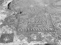 | Description: | From the outer border of the floor. Geometric design outlined in black and white against a red background, the individual motives worked in blue, red, green and yellow tesserae. Cf. A 2104 and A 2105. | |