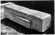 | Description: | Broken at one end. Bottom much worn, moldings battered. Dowel cuttings either side of unfinished end. From the Temple of Ares. Pentelic marble. | |