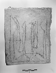 Description:   An architect's or mason's drawing, on black on half a brick, of a Cufic design, evidently for use in the masonry of the church.