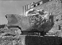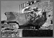 | Description: | Full height preserved, one end and back broken away; anathyrosis on preserved end. Evidence of clamp-cuttings on top. 0.350m. back from the front horizontal cornice, the top is finished at an angle to receive the raking cornice. From the Hellenistic Metroon. Pentelic marble. Cf. A 339. <graphic> | |