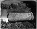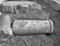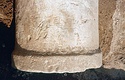 b) In situ to the south of fragment a), lying recumbent north-south below epistyle A 2850.