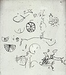 Description:   a) Lower part with fillet at bottom. Covered with doodles.